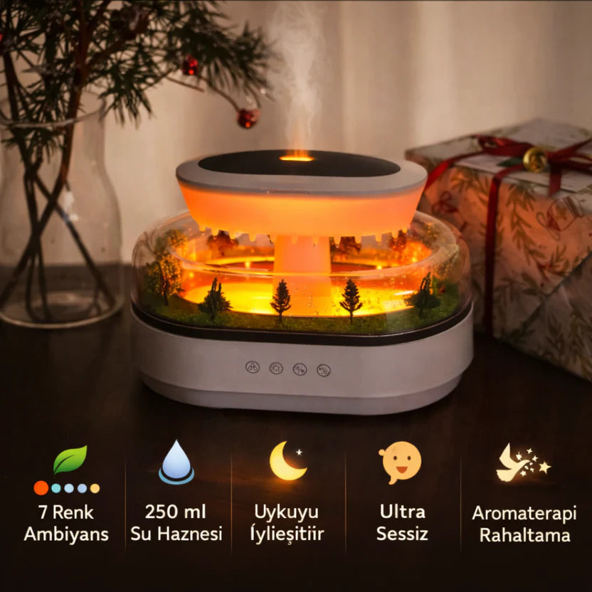 Ortama anında sıcak ve huzurlu bir ambiyans katan şık bir ürün. Orman tasarımı ve aromaterapi özelliğiyle hem göze hitap ediyor hem de ferahlatıcı bir atmosfer oluşturuyor. Sessiz çalışmasıyla ev ve ofis için ideal ✨🔥